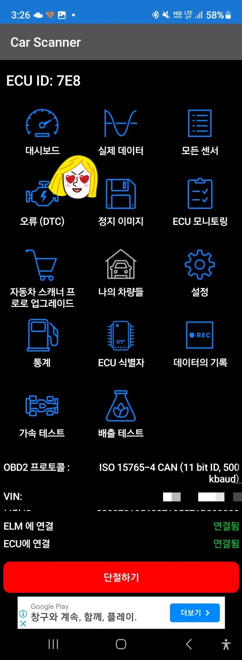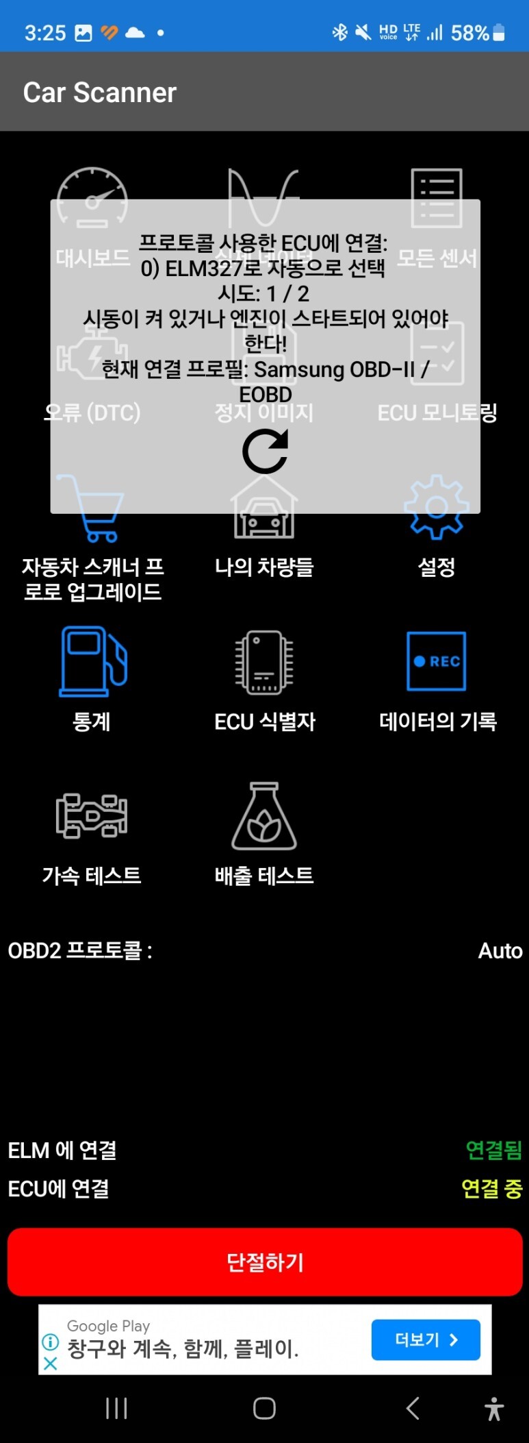 안드로이드 어플은 CAR SCANNER 사용했다.
