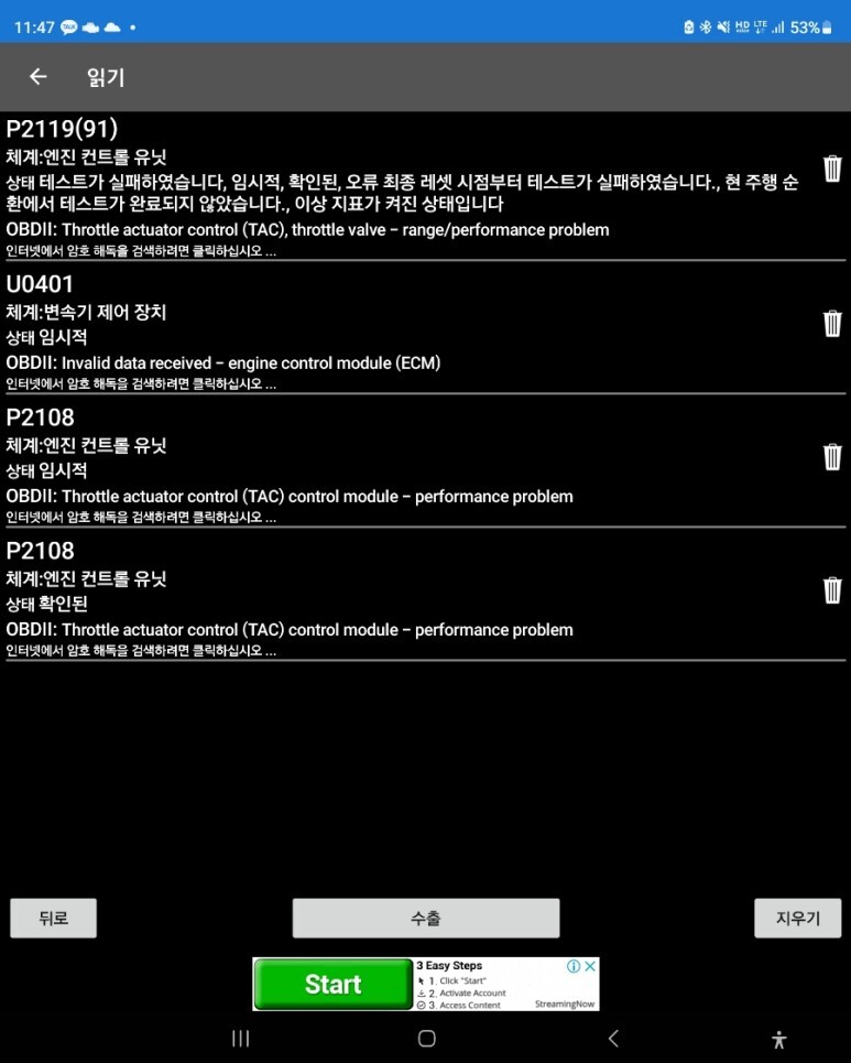 자동차 에러코드가 너무 많아서 일단 지워본다고 했다.