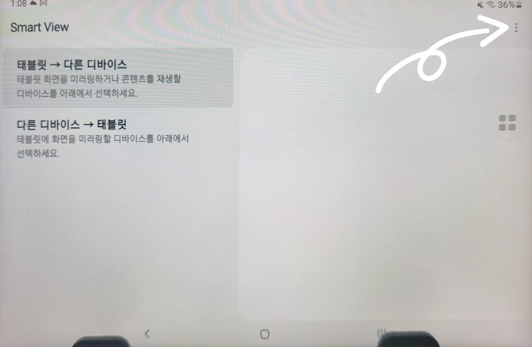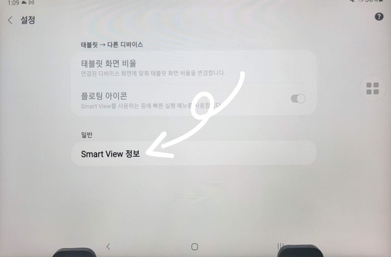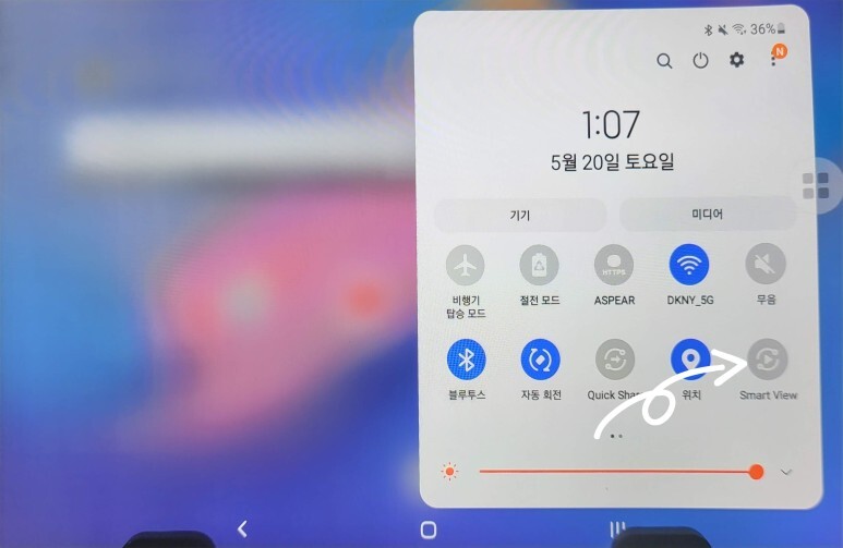 화면을 위에서 아래로 내려보면 Smart View를 터치한다.