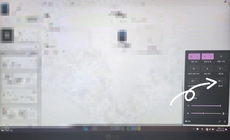 윈도우11 기준 캐스트 버튼을 클릭한다.